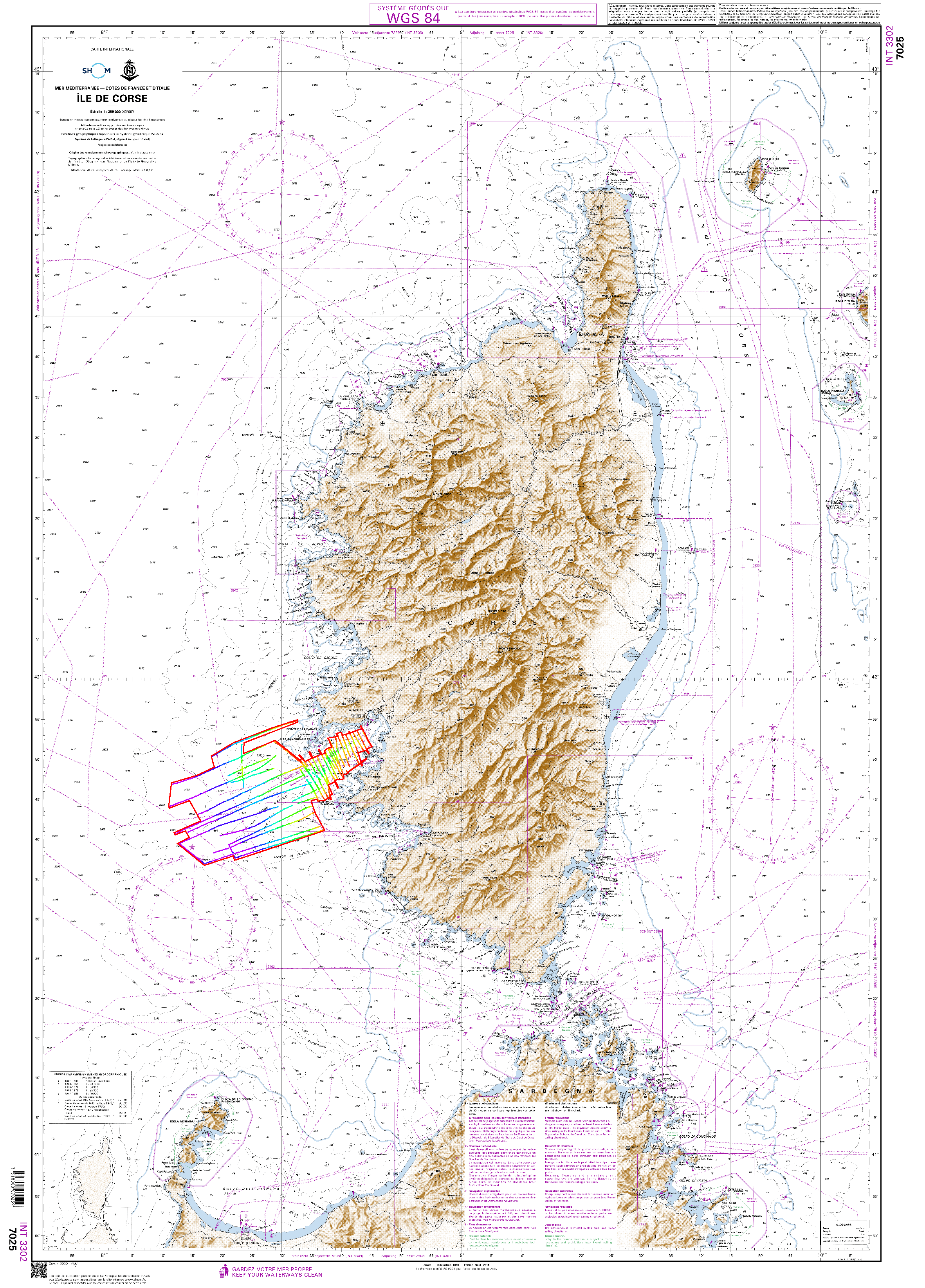 Bathymetric datasets are an extraction of surveys belonging to the Shom public database. For depth up to 50m, the vertical precision of soundings varies from 30cm to 1m and the horizontal precision varies from 1 to 20m. In deep ocean, the vertical precision is mainly around 1 or 2% of the bottom depth. It is sometimes more, it depends on the technology used. The data are referenced to ZH which is assimilated to LAT. Data are corrected for sound velocity variations. Data are acquired during the campaign S183000200 (http://dx.doi.org/10.17183/S183000200). // Instruments: Plomb de sonde // Number of soundings: 7329