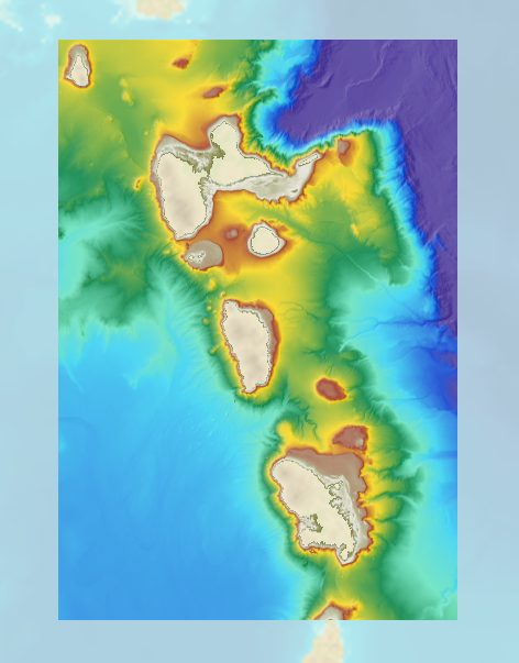 The bathymetric DEM for the coasts of Guadeloupe and Martinique with a resolution of 0.001° (~ 100 m) was prepared as part of the HOMONIM project. The DEM covers some of the Lesser Antilles islands, from Montserrat in the north to Sainte-Lucie in the south. The model ranges off-shore to a depth of 5800 m. The DEM is designed to be used in hydrodynamic models in order to produce high-precision forecasts for coastal water levels and sea conditions and therefore improve the pertinence of the Waves-Submersion monitoring programme.