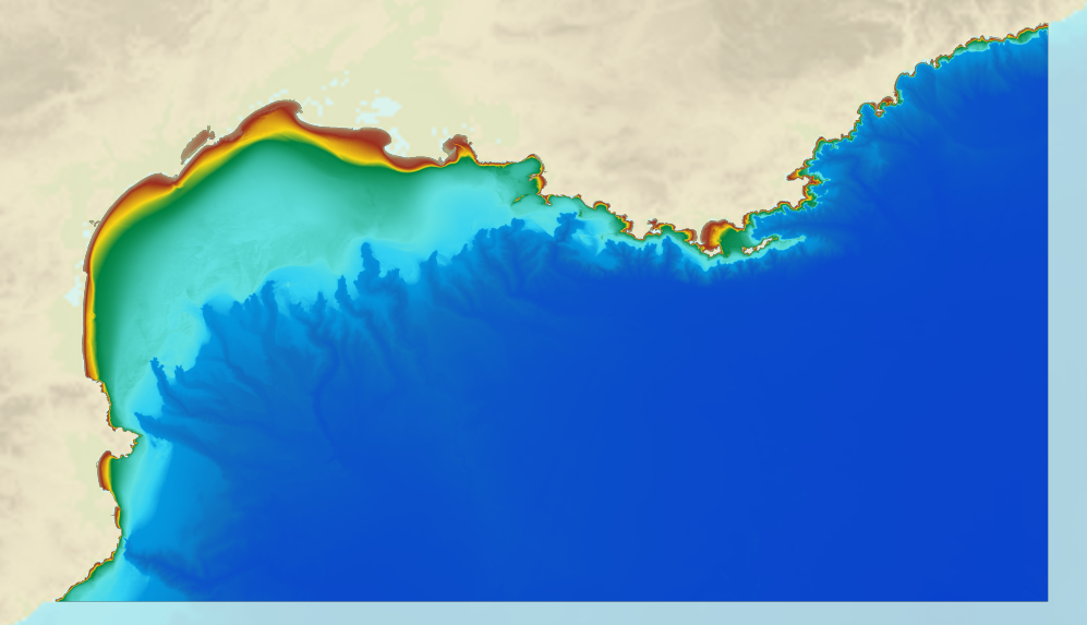 A bathymetric DEM for the coasts of Gulf of Lion – Côte d’Azur with a resolution of 0.001° (~ 100 m) was prepared as part of the HOMONIM project. It covers the entire Mediterranean metropolitan facade. The model ranges off-shore to a depth of 2800 m. The DEM is designed to be used in hydrodynamic models in order to produce high-precision forecasts for coastal water levels and sea conditions and therefore improve the pertinence of the Waves-Submersion monitoring programme. This product is available with the Lowest Astronomic Tide (LAT) or the Mean Sea Level (MSL) as a vertical datum.