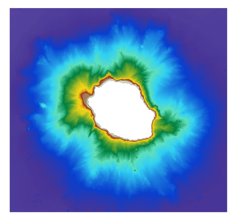 The bathymetric DEM for the coasts of La Réunion with a resolution of 0.001° (~ 100 m) was prepared as part of the HOMONIM project. The DEM covers the entire Reunion island. The model ranges off-shore to a depth of 4000 m. The DEM is designed to be used in hydrodynamic models in order to produce high-precision forecasts for coastal water levels and sea conditions and therefore improve the pertinence of the Waves-Submersion monitoring programme.