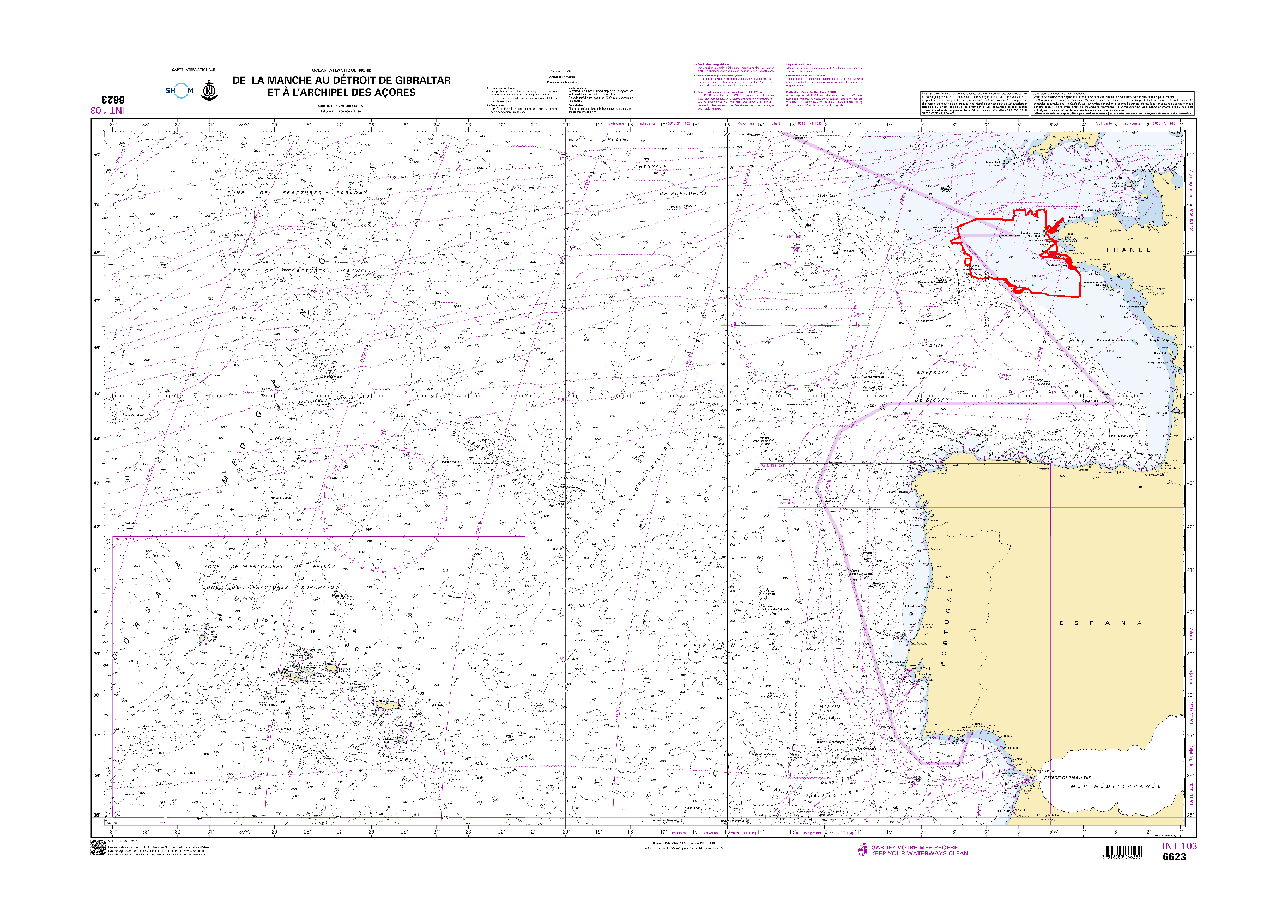 Bathymetric datasets are an extraction of surveys belonging to the Shom public database. For depth up to 50m, the vertical precision of soundings varies from 30cm to 1m and the horizontal precision varies from 1 to 20m. In deep ocean, the vertical precision is mainly around 1 or 2% of the bottom depth. It is sometimes more, it depends on the technology used. The data are referenced to ZH which is assimilated to LAT. Data are corrected for sound velocity variations. Data are acquired during the campaign S202303100 (http://dx.doi.org/10.17183/S202303100). // Instruments: Sondeur multifaisceaux Simrad EM710 // Number of soundings: 2838390